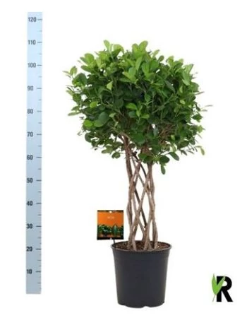 A Ficus ‘Mi Moclame’ körfonott törzses különleges, körfonott gyökértörzse és sűrű, fényes levelei látványos, trópusi hangulatot adnak a beltéri térnek. Ideális választás nappalikba, irodákba vagy polcokra, ahol dekoratív és karakteres növényt szeretnél.