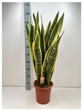 A Sansevieria ‘Laurentii’ egy klasszikus és nagyon népszerű szobanövény, amely felálló, sötétzöld leveleit világos sárga szegély díszíti. Elegáns, oszlopszerű habitusa miatt nappalikban, irodákban vagy előszobákban egyaránt látványos, modern megjelenést biztosít. Lassú növekedésű és könnyen tartható, ezért kezdő növénytartók számára is ideális.